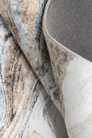 Inspired by marble`s natural elegance, the Marble Wave Rug features fluid ivory, beige, and blue veining for a luxurious modern look. Its velvety faux rabbit fur texture adds warmth and sophistication to any room.