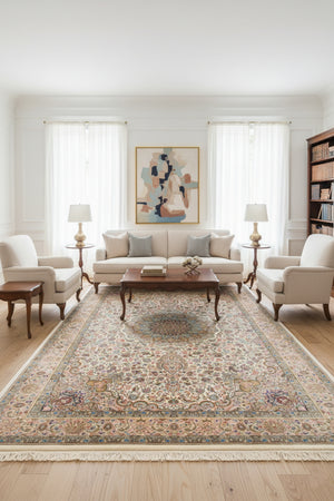 Persian Silk Carpet - Golden Bloom Majesty