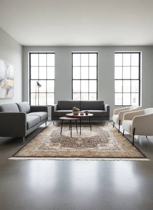 Persian Silk Carpet - Mocha Gold Lotus Emblem