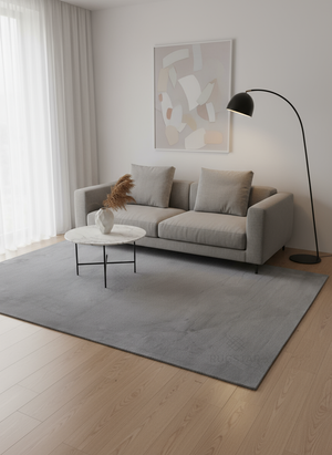 The Steel Whisper Puffy Faux Rabbit Fur Carpet redefines modern elegance with its deep graphite grey tone. Its soft, dense texture mimics real fur while maintaining a luxurious matte finish. Perfect for chic, contemporary homes seeking warmth and sophistication without compromise.