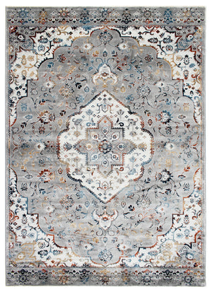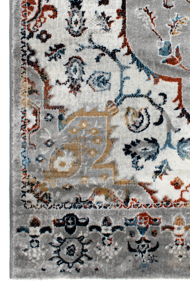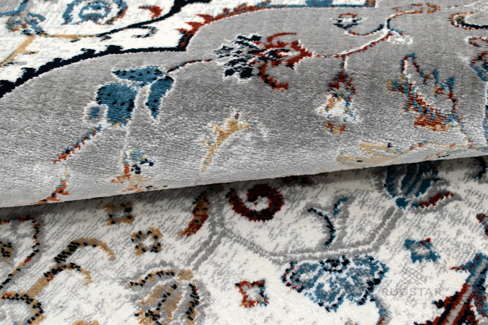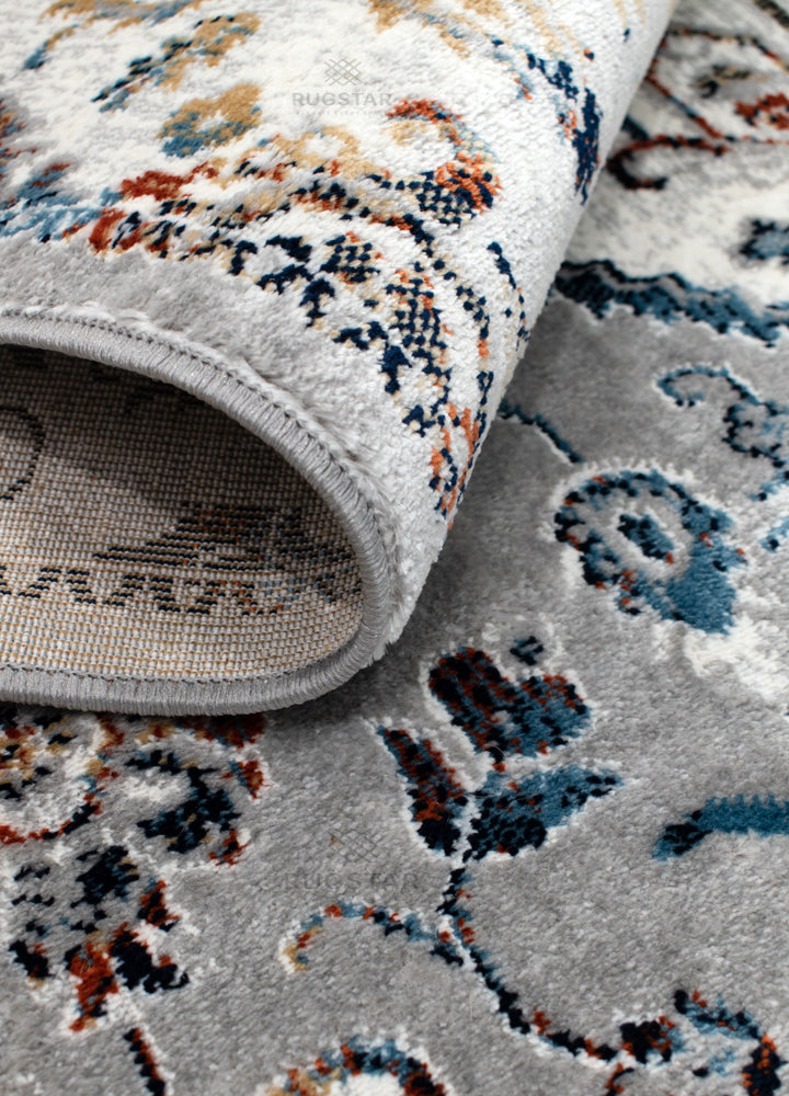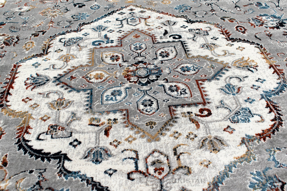 Topkapi Grey Persian Carpet – Classic Floral Medallion in Silver and Blue