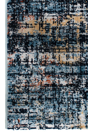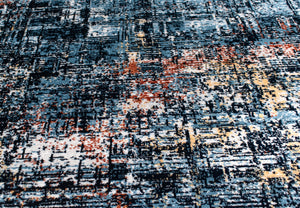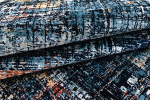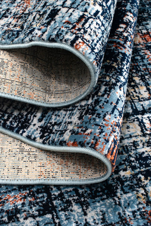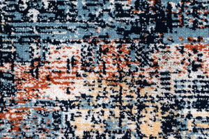 A modern statement from the Topkapi collection, this Indigo Abstract Carpet blends deep navy and teal tones with warm rust accents for a textured, artistic look. Crafted from premium polyester and power-loomed in Turkey, it merges contemporary aesthetic with enduring comfort and resilience.