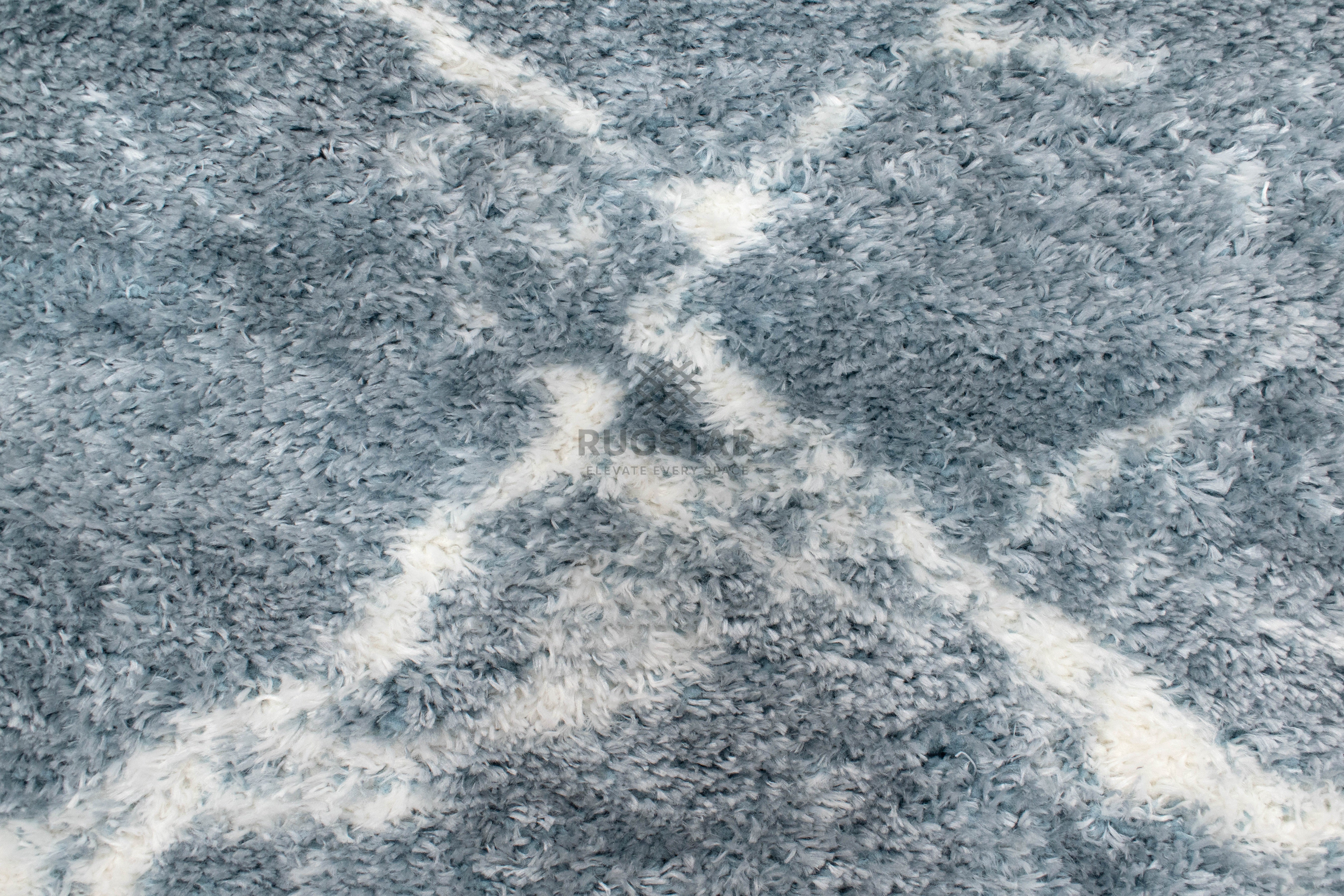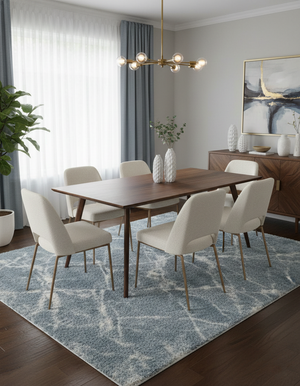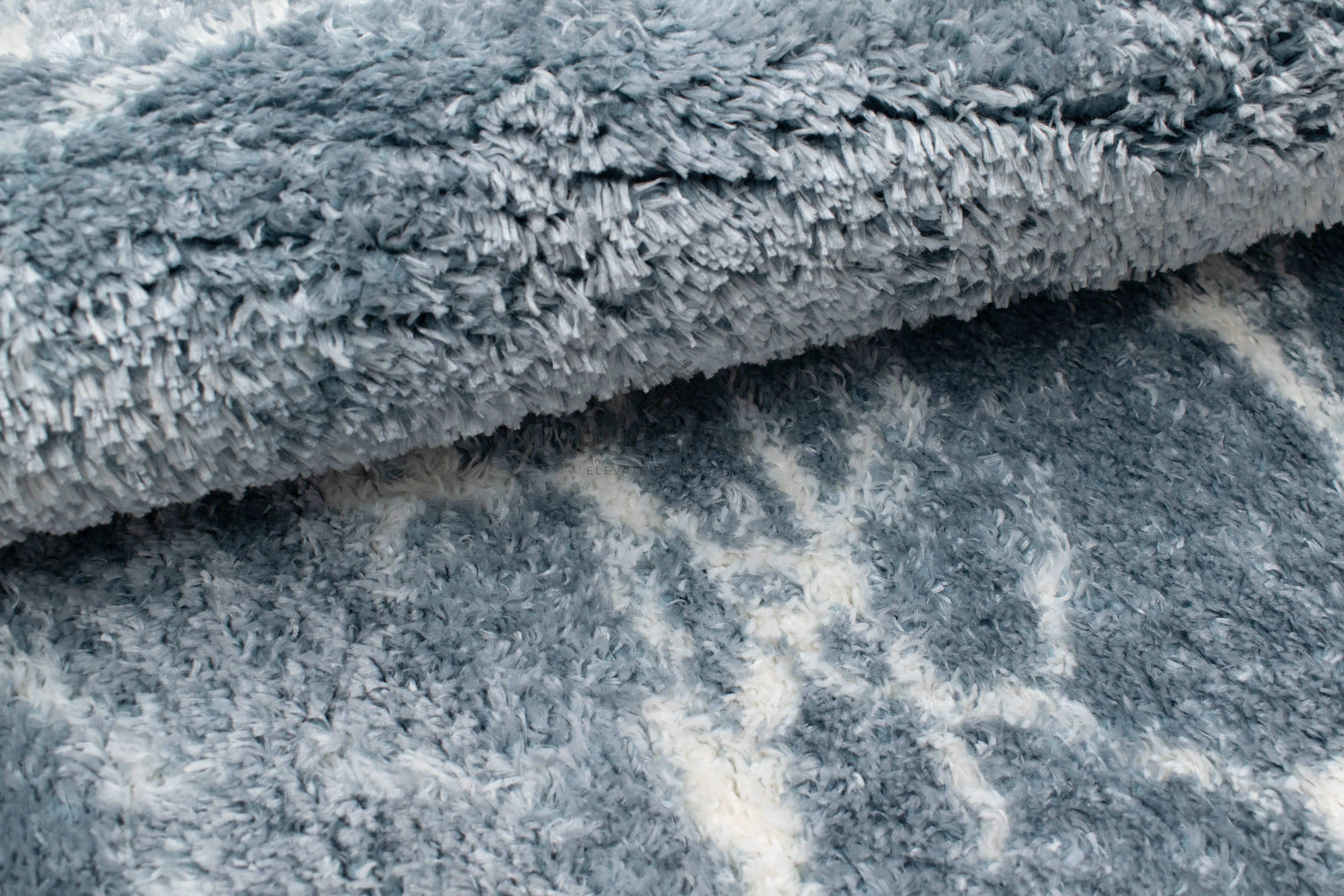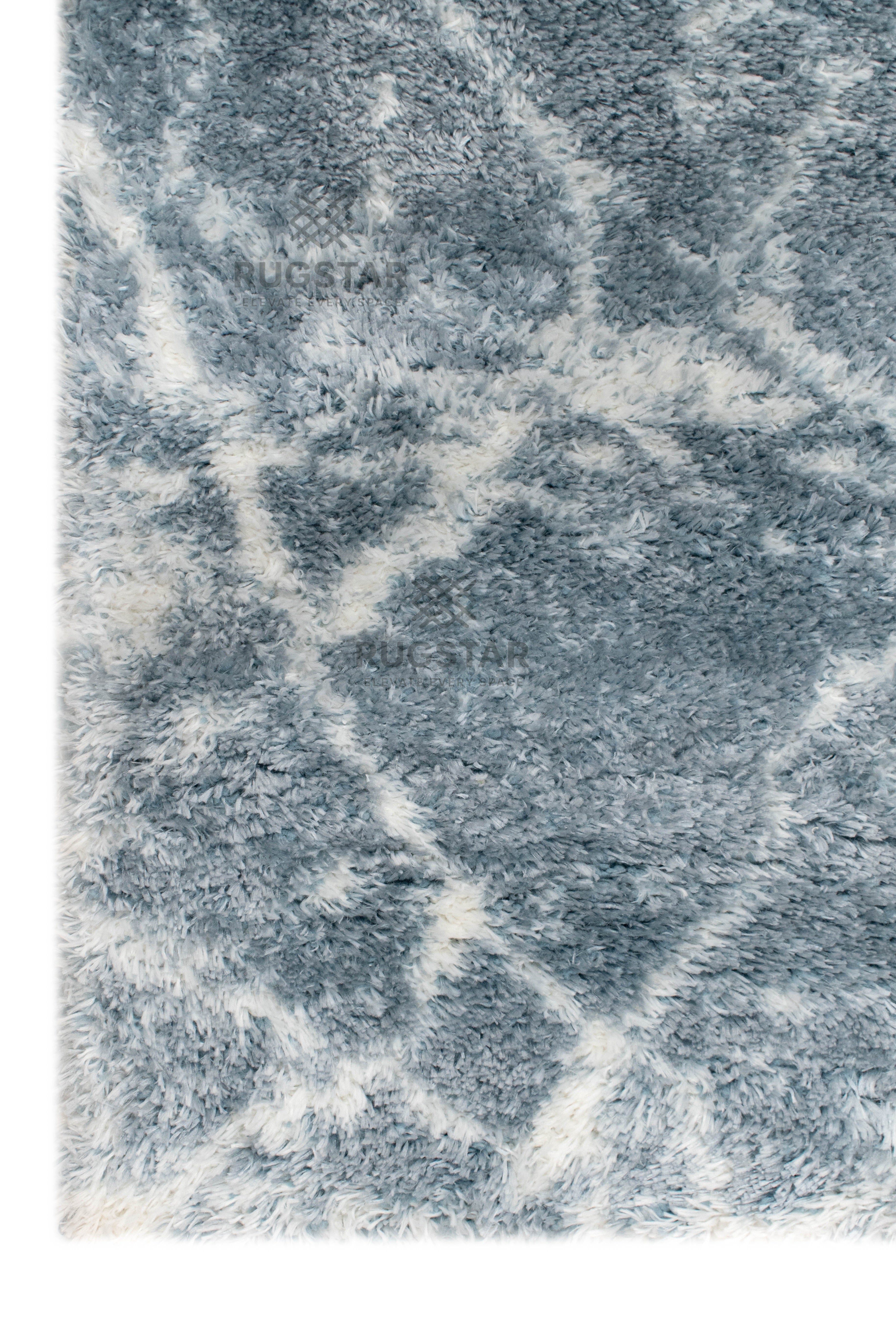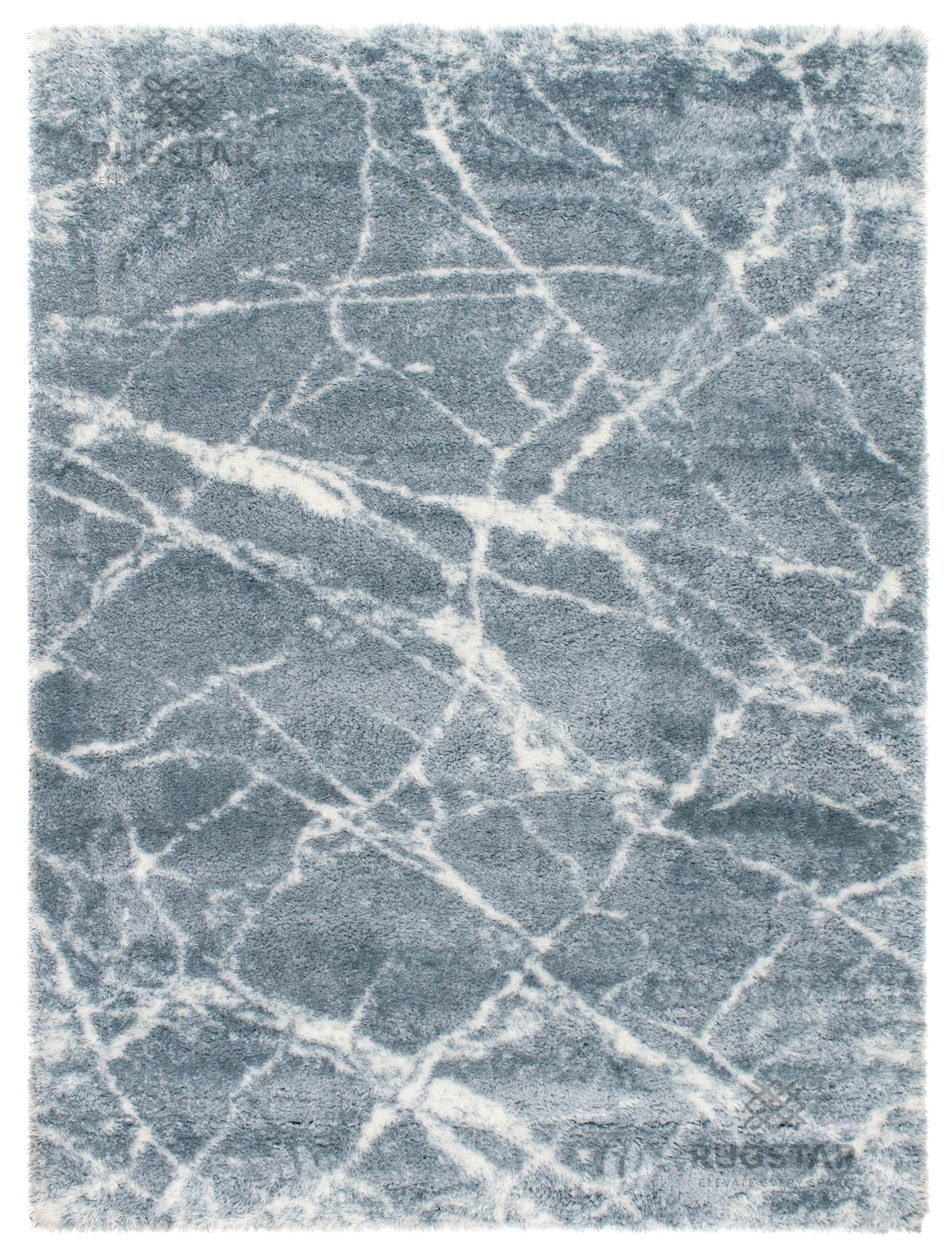 A refreshing ice-blue shaggy carpet with marble-style white streaks, perfect for Scandinavian and calming interiors. Crafted using premium polyester.