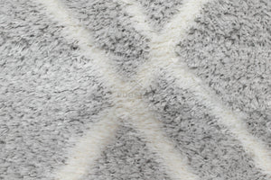 Turkish Washable Shaggy Carpet – Light Grey & White Diamond Pattern