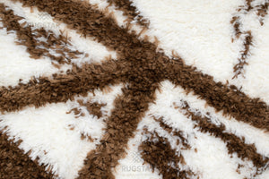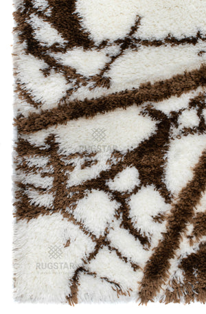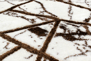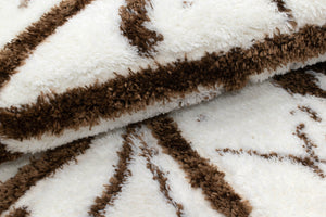 Turkish Washable Shaggy Carpet – White & Brown Geometric Abstract Pattern
