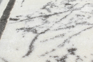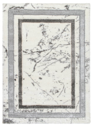Turkish Washable Shaggy Carpet – White & Grey Border Marble Pattern