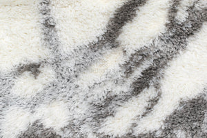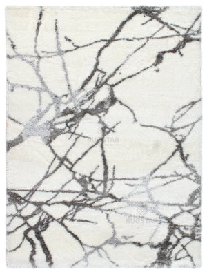 Turkish Washable Shaggy Carpet – White & Grey Modern Abstract Design | Soft Polyester Floor Rug