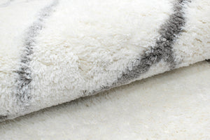 A modern shaggy rug with an elegant grey abstract line design on a clean white background. Premium polyester ensures softness, durability, and easy maintenance.